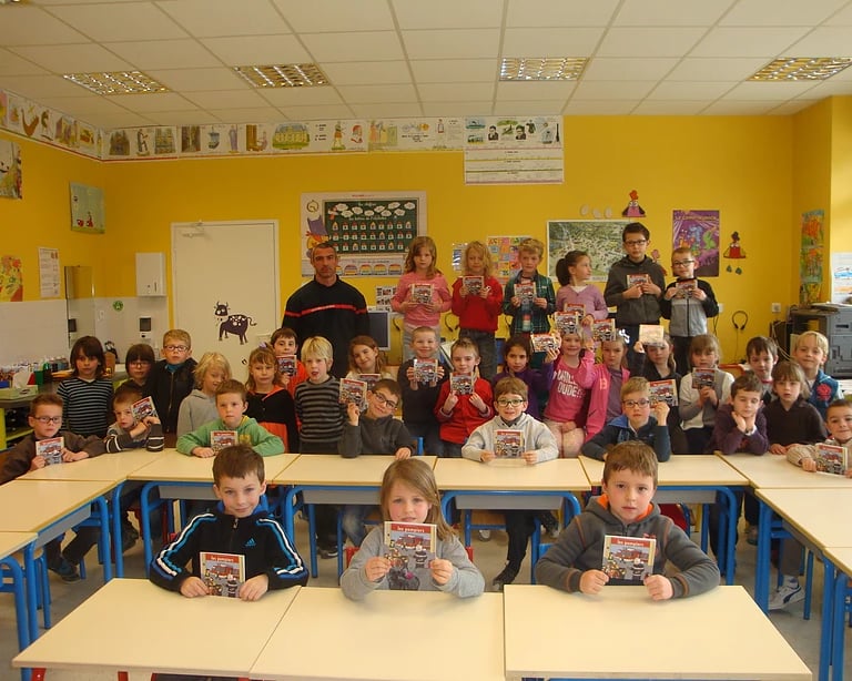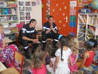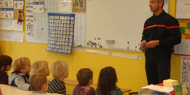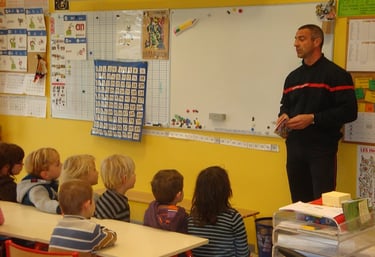 Des pompiers viennent dans les classes pour expliquer leur métier et partager leurs expériences. Ils dispensent aussi des conseils de prévention et sécurité. Les petits aussi peuvent sauver des vies.