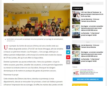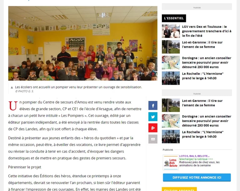 Tout est possible. Motivés par les demandes, les témoignages de certains de nos anciens petits lecteurs aujourd'hui engagés dans le JSP (Jeunes Sapeurs Pompiers) et enfin libérés de nos obligations (Eh oui les amis on a vieilli), nous disposons de 100% de notre temps pour diffuser la nouvelle édition mise à jour de notre livre illustré tant attendu. Les entreprises et collectivités locales conscientes de cet enjeu sociétal crucial nous répondent présents. Les écoles nous appellent afin d'être livrées, elles souhaitent toutes organiser l'accueil de Pompiers en classe et la visite de casernes.
