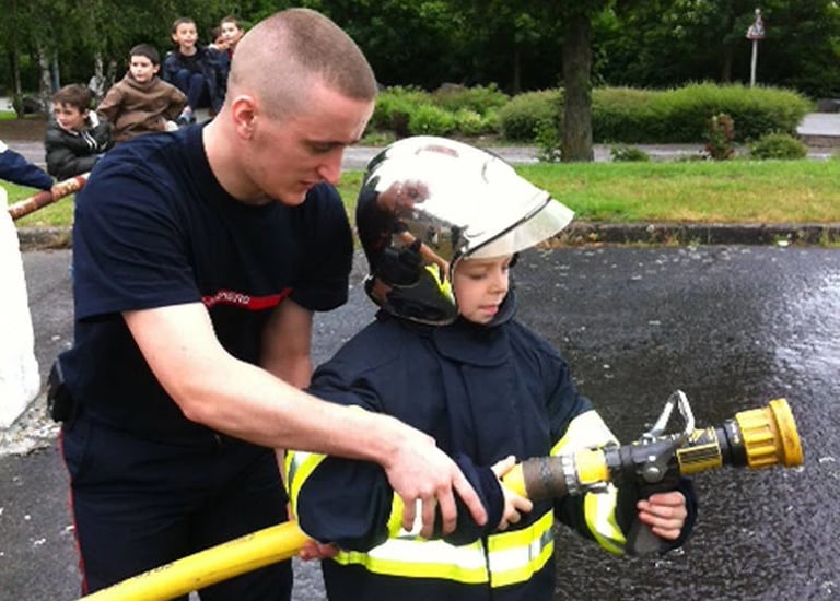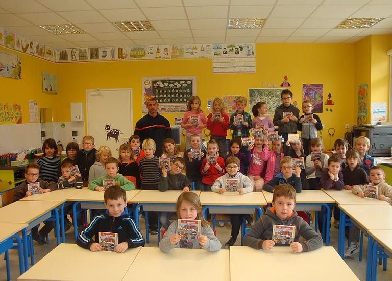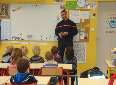 Nous intervenons dans les écoles élémentaires françaises pour promouvoir le métier de pompier et organiser des visites de casernes.
